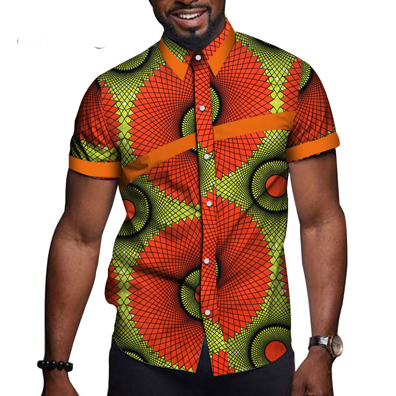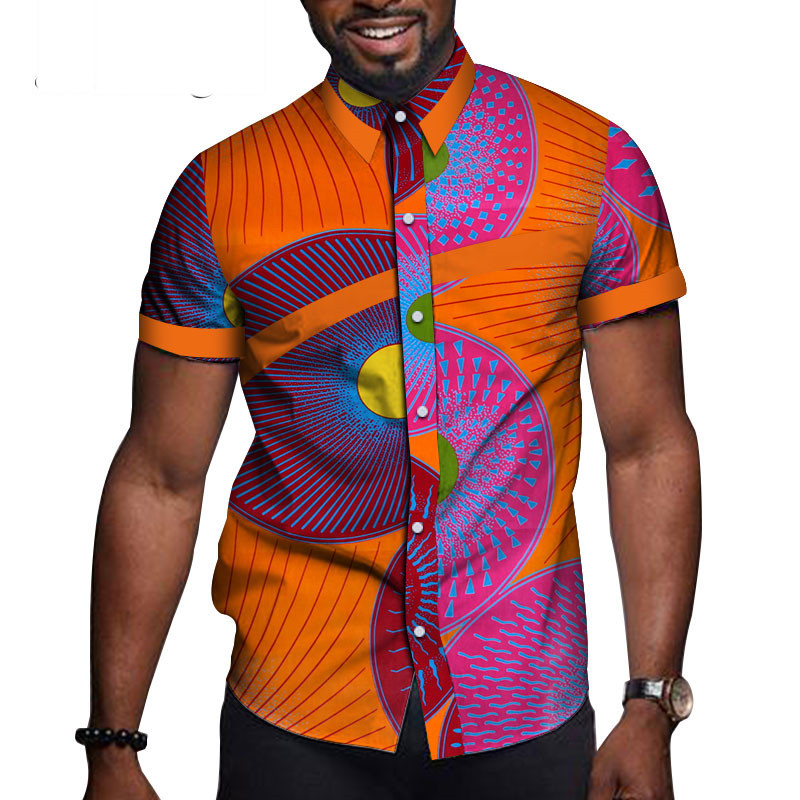 Ndị nwoke Africa bụ uwe Bazin Riche Bipute Causal Party Men Short Sleeve Tops Ankara WYN714